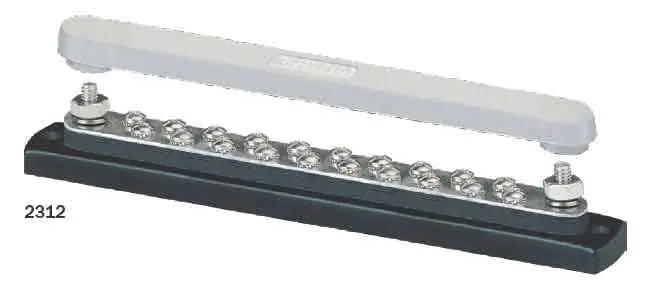 Barra colectora de cobre bañada en estaño de 150 Amperios con tapa. La mejor opción en barras colectoras de medio amperaje. Perfecta para la distribución del circuito positivo y colectar el negativo