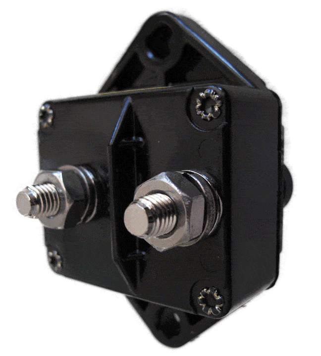 Medium duty thermal circuit protection for 25 to 150 Amps. The 285-Series are a drop in replacement for the 185-series with the exact same dimensions for easy replacement. Trip Free - designed to trip even if the reset lever is held in the on position. Self trimming case with recessed holes for a simple and clean installation. Large clearance around the terminal studs for large gauge wire lugs.