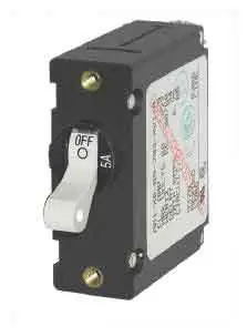 Panel mount magnetic-hydraulic circuit breakers from Blue Sea Systems. Trip Free - designed to trip even if the reset lever is held in the on position. Combines switch and circuit breaker in one unit. Used with the A-series mounting panel for simple installation.