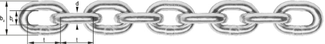 | Standard | d mm | t mm | b1 min. mm | b2 max. mm | Weight kg/m | Working Load kg | Breaking Load kg | |