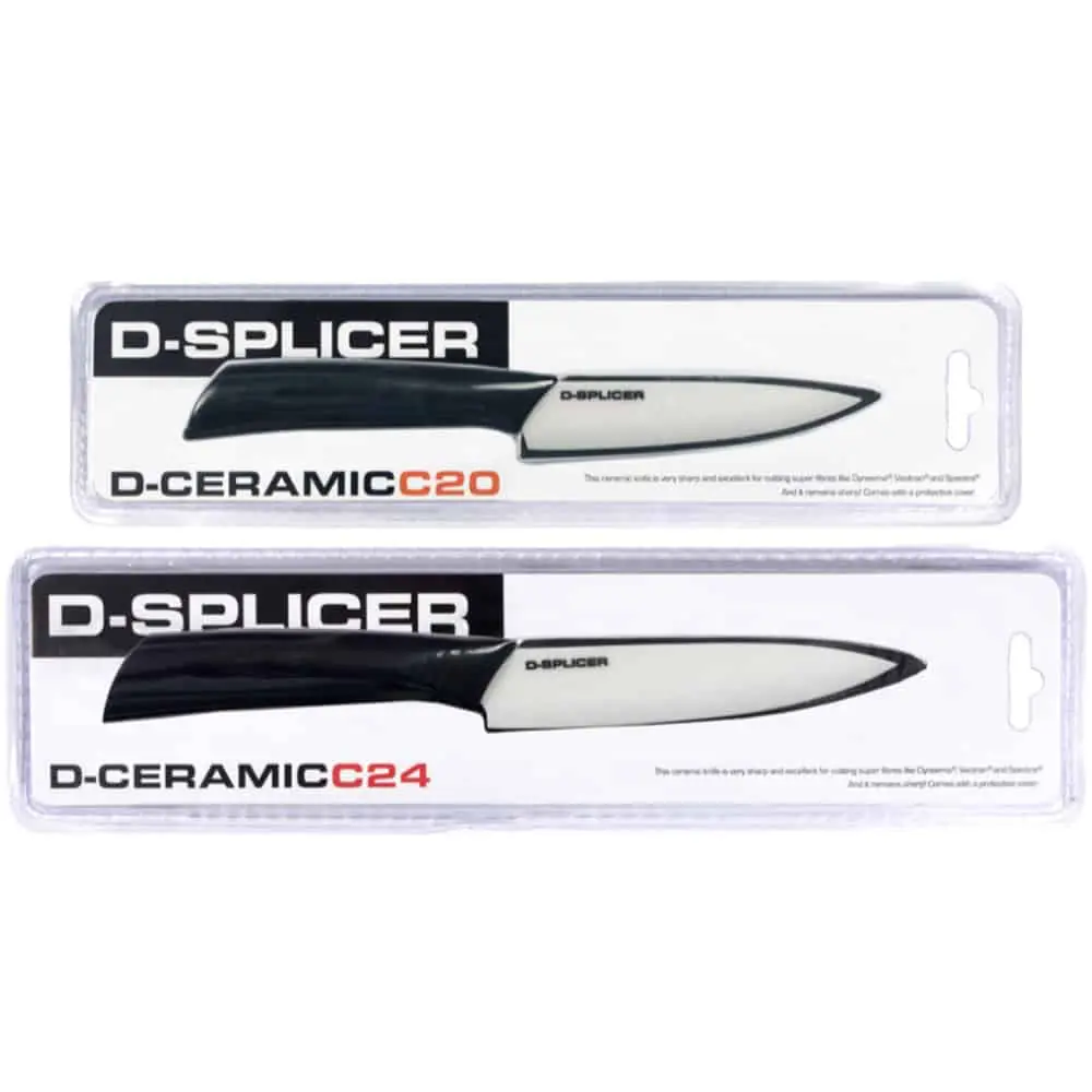 D-Splicer ceramic knives are designed to cut strong fibres like Dyneema®, Vectran® and Stirotex®. Regular knives do not work on these materials. D-Splicer ceramic knives are not only razor sharp but also retain their sharpness 10 times longer than steel. They need no maintenance and for occasional use will provide many years of service. Supplied with protective cover.