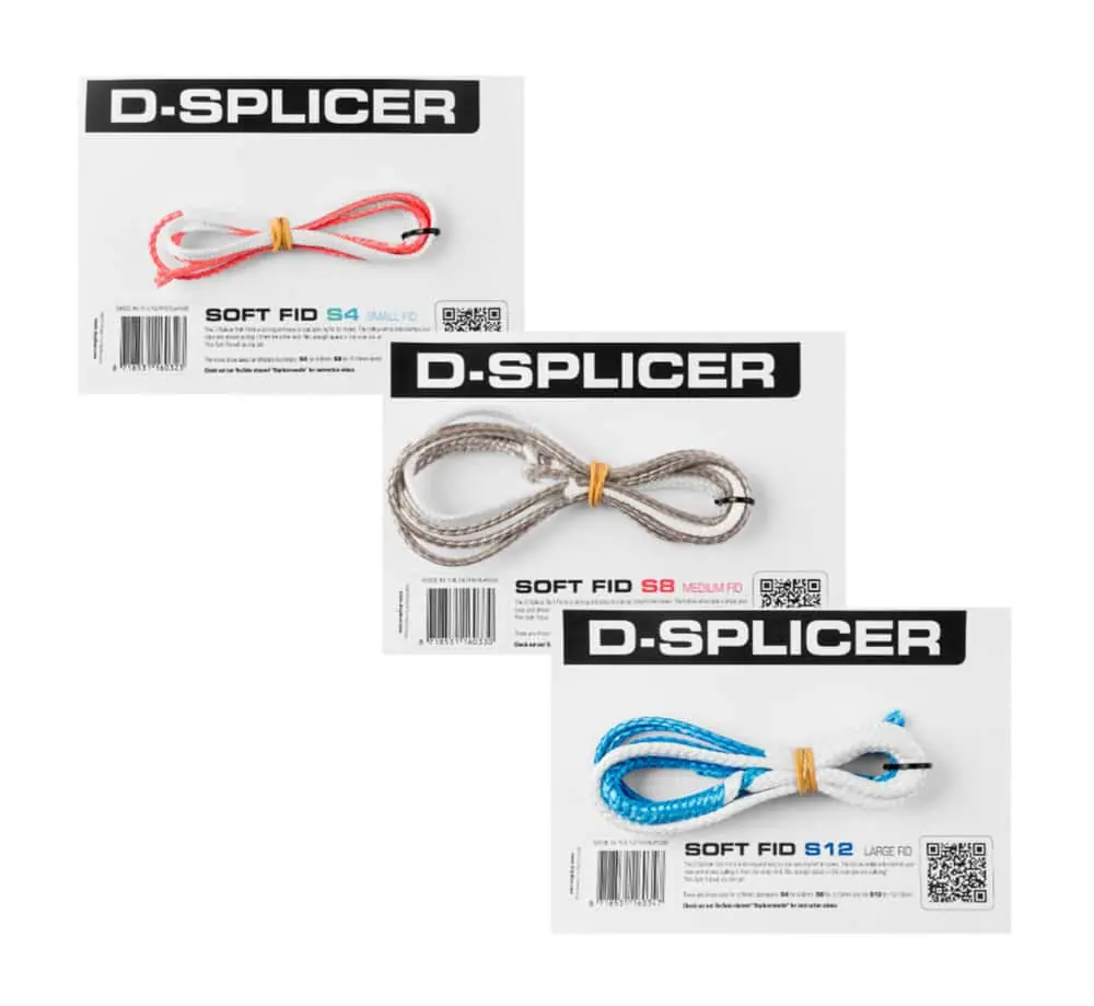 El D-Splicer Soft Fid presenta una longitud de Dyneema fina muy resistente en un extremo combinada con una funda hueca blanca en el otro extremo. El extremo de la funda hueca blanca sujeta la cuerda y permite tirar de ella.