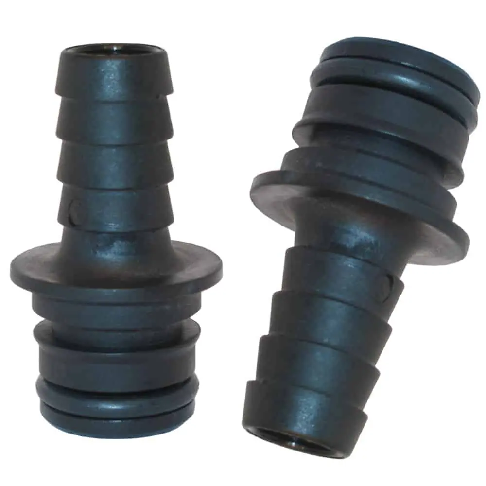 Barbed hose connectors with Flojet Quad Port fitting for easy and fast connection to Flojet pumps.