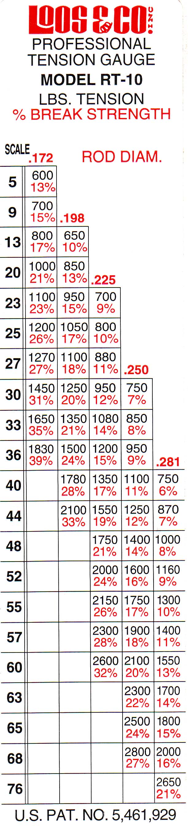 The bigger brother of the Loos & Co. Professional wire tension gauges the RT10M and RT11M are specifically designed for rod rigging and higher tensions. Easy to use, just slide the rod between the two upper rollers and then pull the spring loaded gauge onto the rod, you will be able to measure accurately rig tension for quick and repeatable tuning. Each model covers a range of approximately 5% to 25% of the breaking strength of the rod with 3% accuracy. Rig tension can be adjusted with the gauge in place.