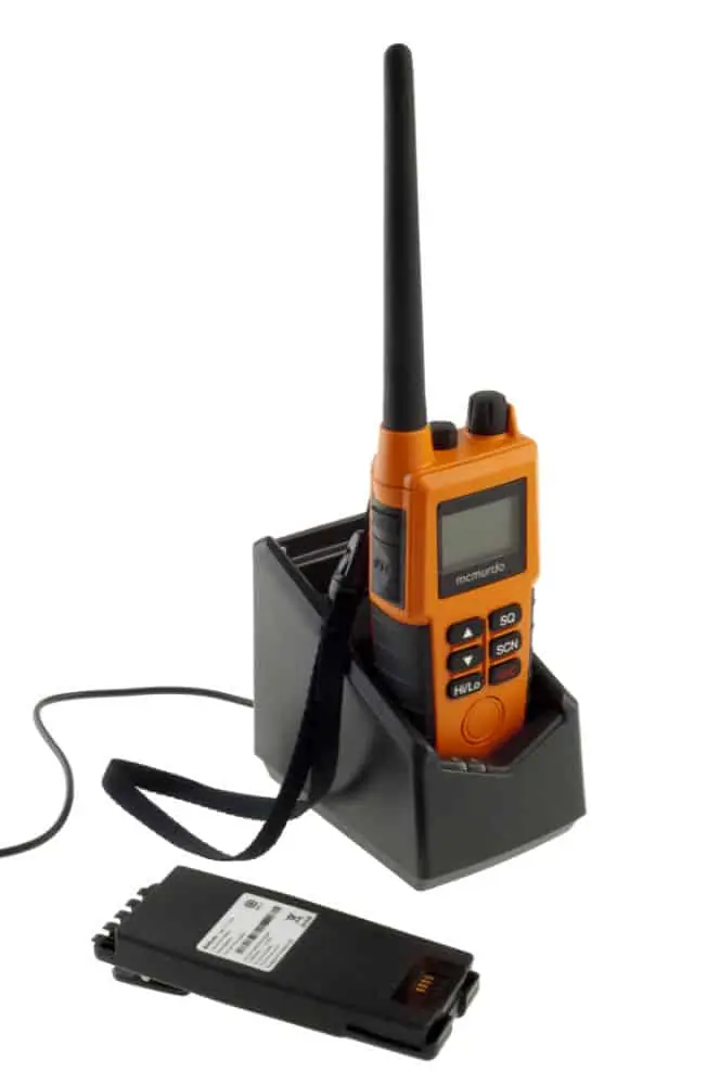 Fully featured handheld GMDSS VHF radio with user friendly design and features.