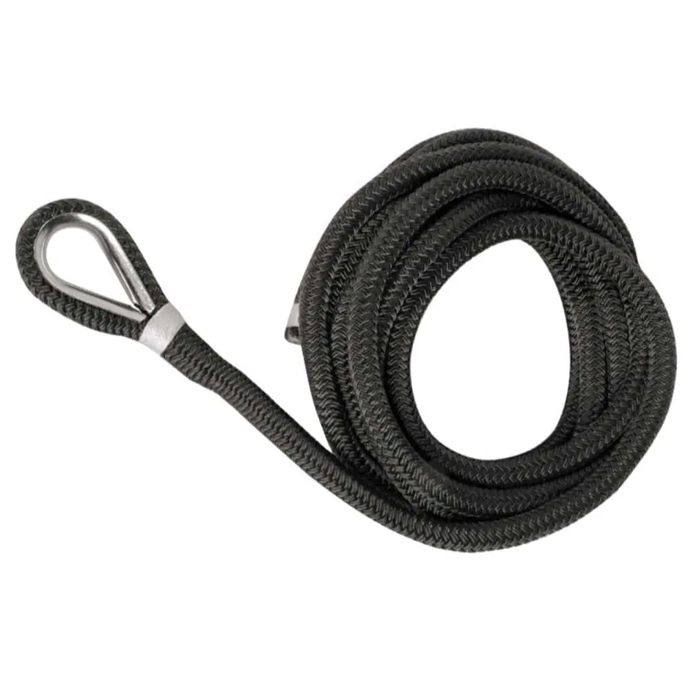 Amarre de poliéster de alta resistencia, resistente a los rayos UV, de doble trenzado, entallado a mano con una anilla o guardacabo de acero inoxidable AISI 316.
