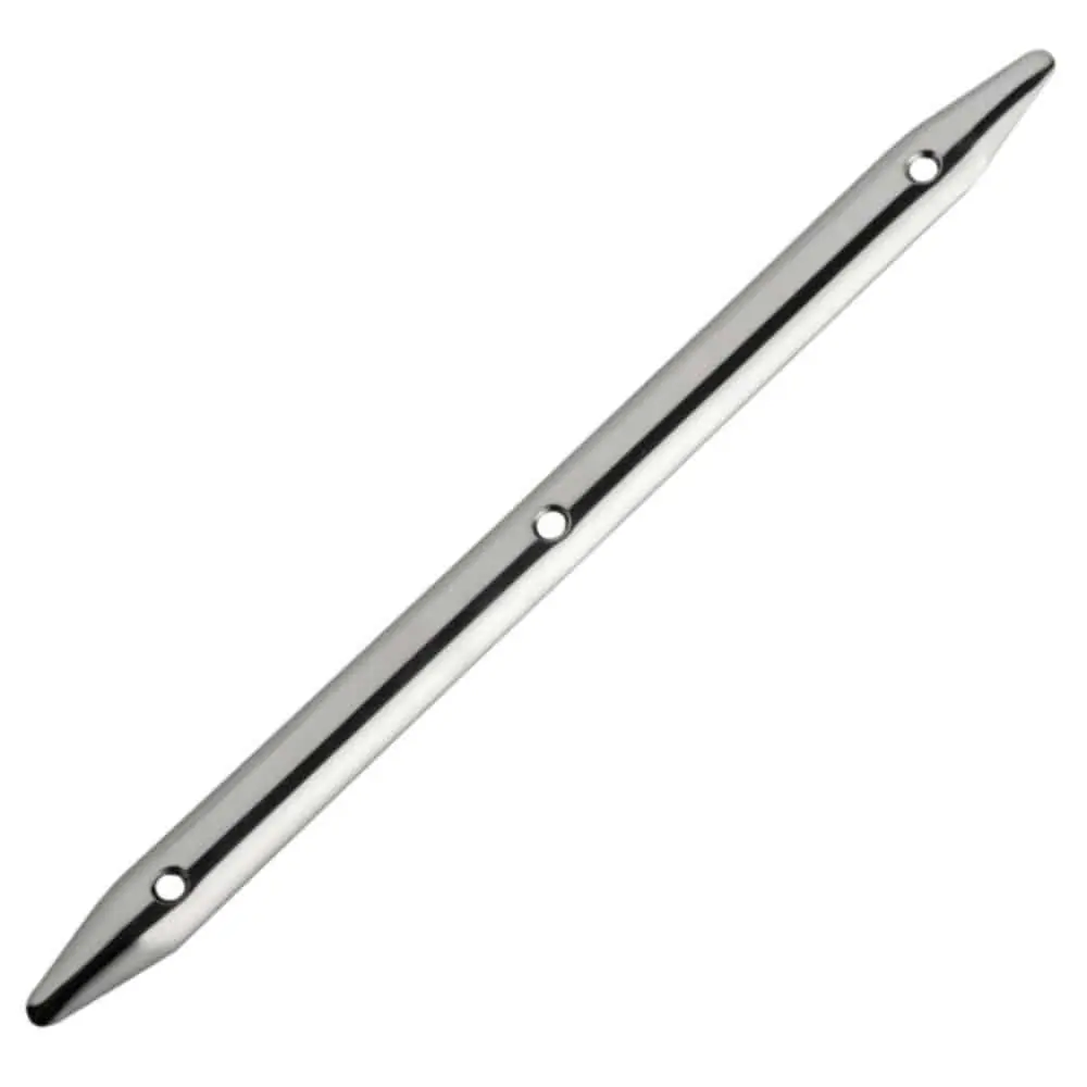 Perfil de acero inoxidable AISI 316 (A4) anti rozamiento para proteger el gelcoat, las superficies pintadas y la madera de daños causados por cabos o cadenas. Pretaladrado para tornillos avellanados de 6 mm a 90°. Diseño cóncavo hueco ideal para superficies planas y curvas. Extremos moldeados y cónicos para evitar enganches.