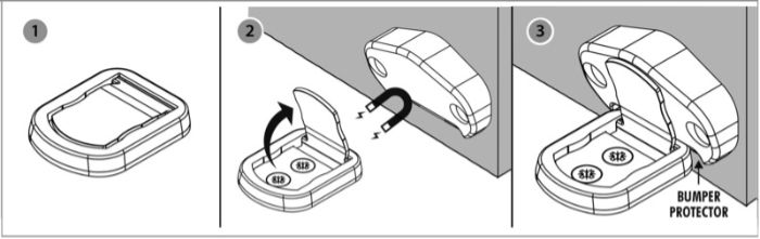Innovative redesign of the classic magnetic door latch. Consisting of two parts, the 18° inclined door magnet and the floor fitting with retractable plate. As the door magnet approaches the floor plate, the magnet lifts the plate and latches the door. When not in use, the plate automatically returns to a flat, recessed, obstacle-free position.