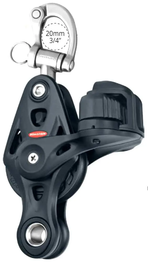 - Ideal 2:1 polea de driza con fijación / liberación rápida.