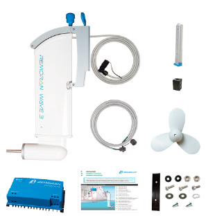 The Remoran Wave 3 is a patented 300 W hydrogenerator with innovative pivoting quick release mounting system and telescopic design for easy installation on most transoms without adaptors. Installation requires drilling only two 8 mm holes for the mounting rail and a hole for the electrical plug. The Wave 3 can easily be removed by simply pulling the built-in release handle and sliding the hydrogenerator of the mounting rail, ideal when not required or when leaving the boat unattended in port or anchorages. The low-profile discreet mounting rail remains installed for quick deployment when needed again.