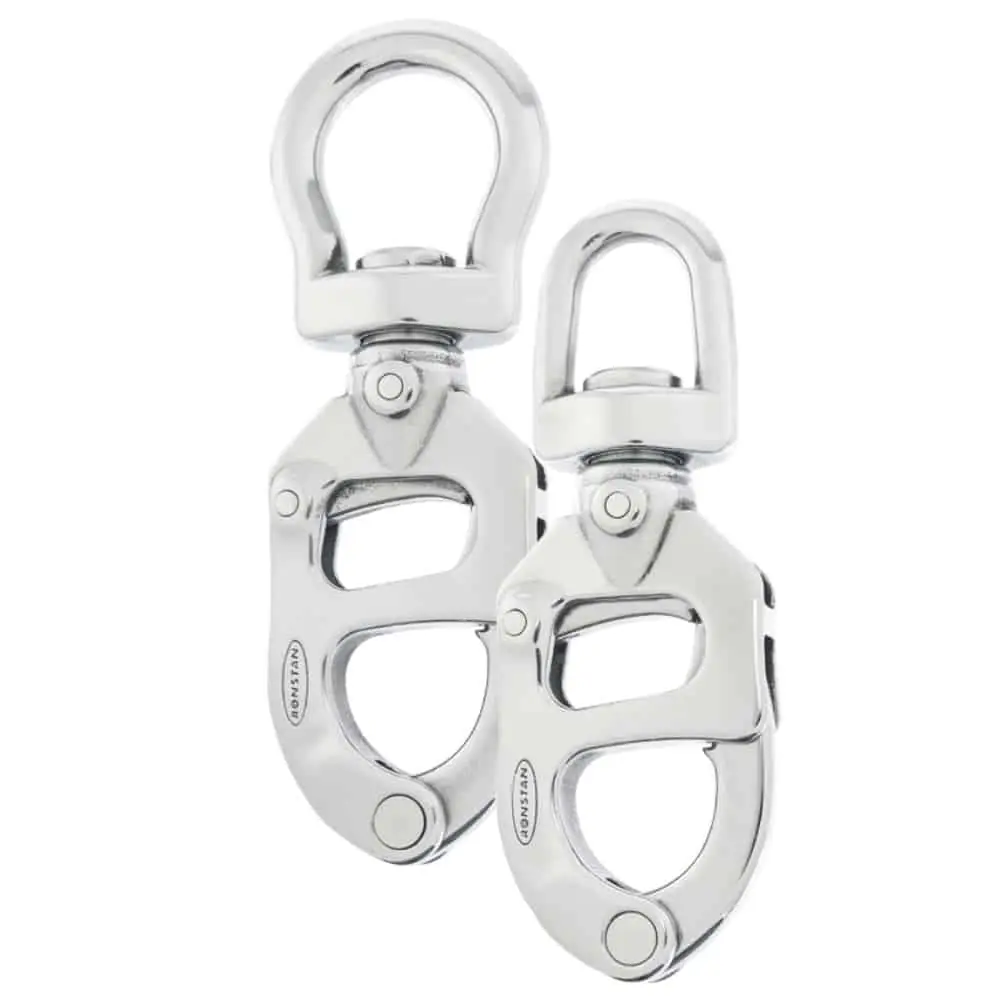 Alta relación resistencia-peso y prueba de carga individual probada y estampada durante la fabricación para un máximo control de calidad y trazabilidad. Triggersnaps™, la última gama de mosquetones de Ronstan cuenta con un mecanismo de cierre/apertura para una operación rápida y fácil con una sola mano. Suelte de forma segura bajo carga con el punzón de aluminio Ronstan para activar fácilmente el gatillo.