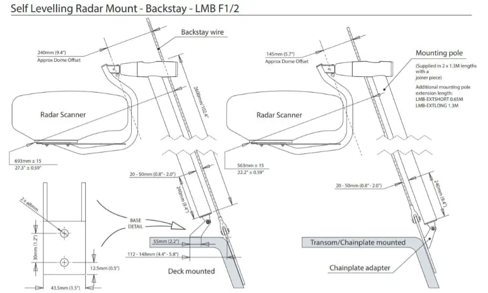 - LMB A1 / LMB A2 - The self-levelling radar mounting platform is aft of the backstay. An optimal choice for boats with limited space between the mainsail leech or topping lift and the backstay.