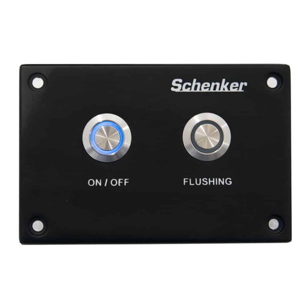 Two Button Multifunction Remote Control Panel - the included remote-control panel has just two buttons with LED lights. The panel allows basic operation as well as initialization, fault indication, flushing, and a 1, 2, or 3 hour cycle with flushing at the end, just hold the ON button until the desired number of hours/beeps is heard and release.