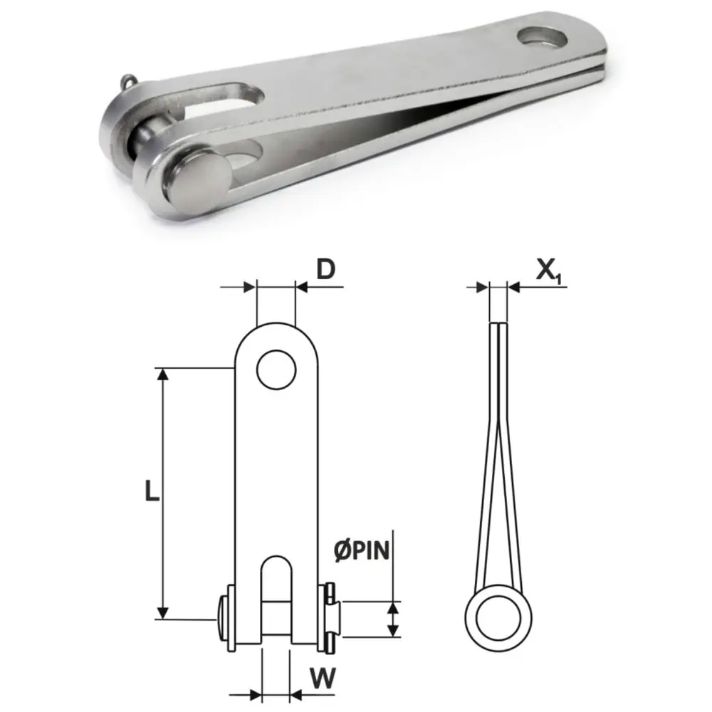 The Seldén Eye/Fork Extension Link Toggle (also known as an Eye/Fork Extension Link) is a precision-engineered stainless steel rigging component designed for Furlex jib furling and reefing systems on sailboats.