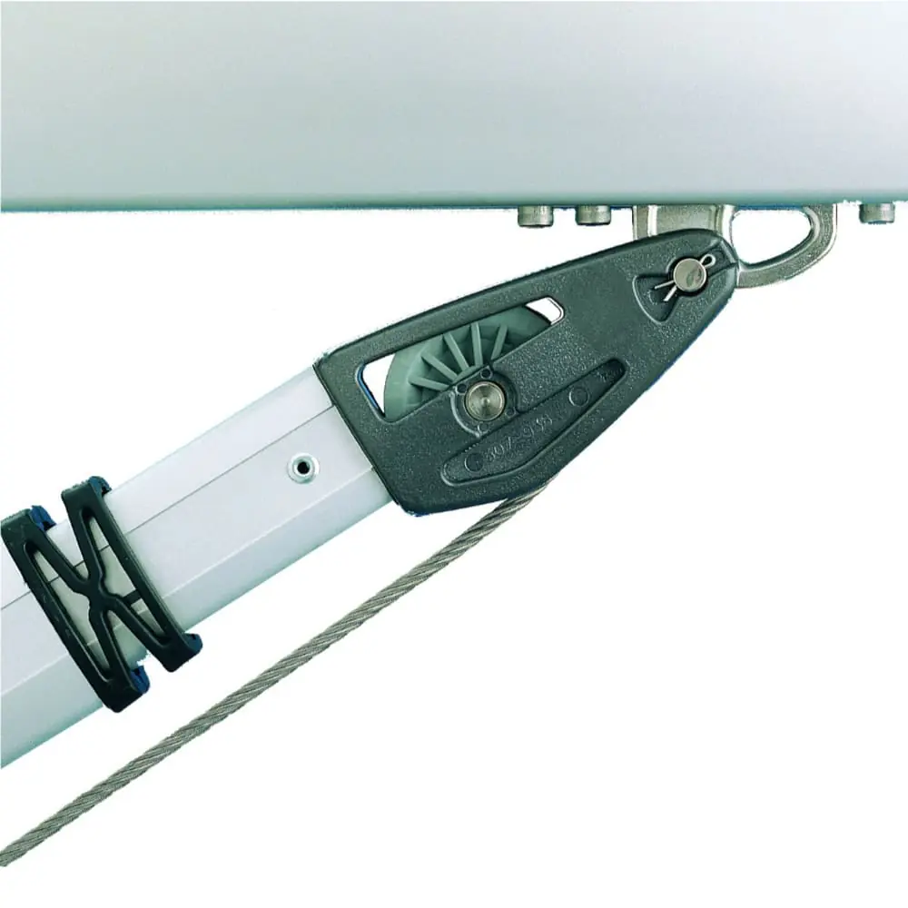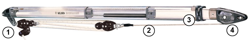 A Seldén Rodkicker facilitates sail handling when reefing, preventing the boom from dropping into the cockpit or onto the coach roof. When fitted with an an optional Seldén gas spring, the boom lifts when the kicking strap is released, excellent for trimming the main in light air and avoiding the use of a topping lift. The Seldén Rodkicker also doubles the purchase of your kicking strap when the line is led back to the cockpit or alternatively a block and tackle can be added for easy operation from either side of the boom.
