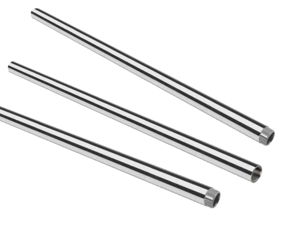 Polished stainless steel threaded mast for marine wind generators.