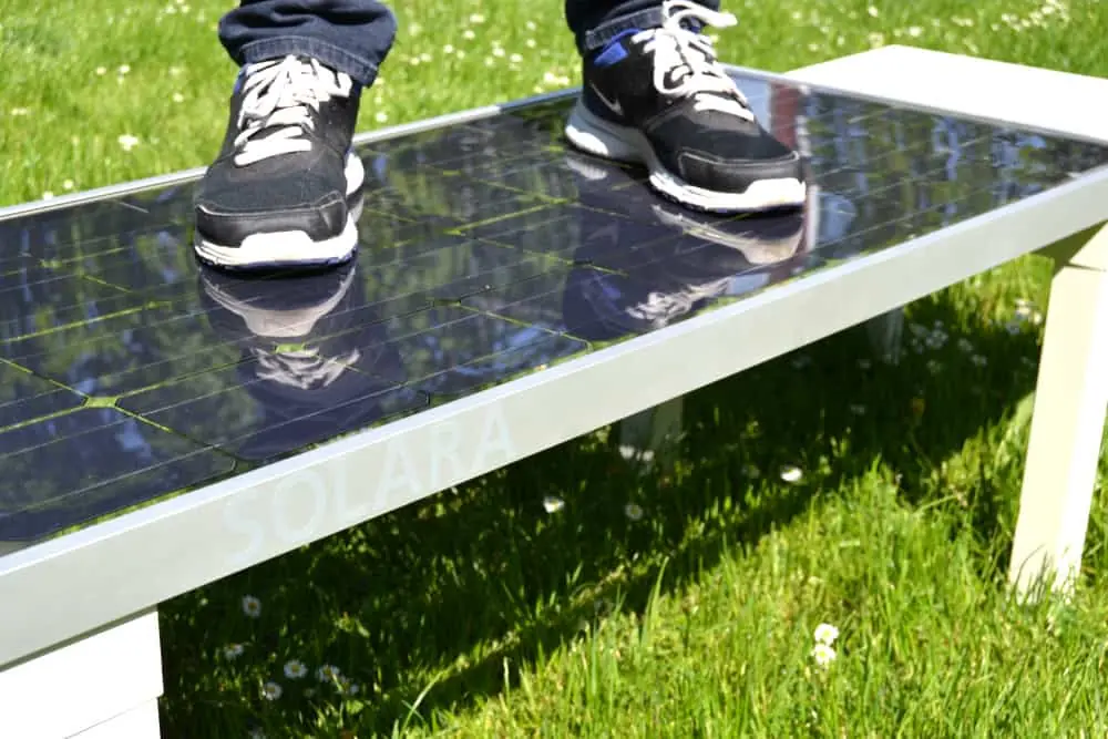 The tempered glass-glass sandwich technology features both a tempered d-glass front sheet and tempered glass back sheet and provides not only incredible stiffness but allows the panels to be walked on without damage, in fact they can carry up to 18000 Pa pressure equivalent to 1800 kg/m². They are also impact resistant.