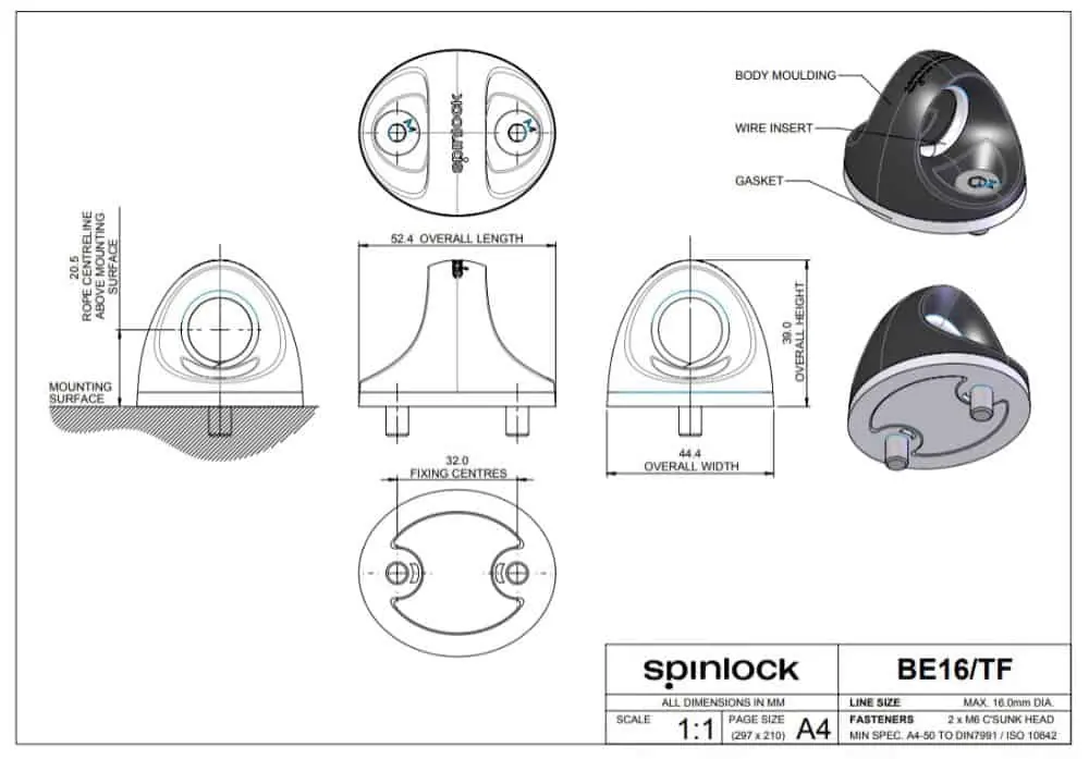 - Guides extra lines to the cockpit cleats and clutches when no organiser sheaves are available