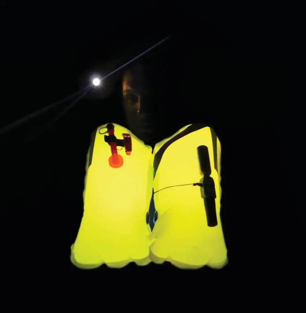 An innovative and simple safety device designed to use the lifejacket bladder to increase visibility and aid location. Designed to be used in addition to approved lifejacket lights, the Lume-On consists of 2 flashing, water activated - waterproof (IP68) LED Lights which are attached, one on each side, to the lifejacket bladder. Unlike traditional lights, the LED is installed face down! When activated, the light uses the bladder as a diffuser to increase visibility.