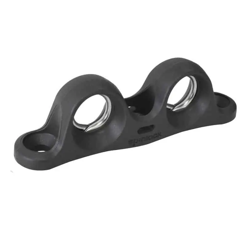 Spinlock Multiple BullseyeNew solution for low loaded lines, either fitted alone or double stacked onto new T25 organisers. Using the successful stainless steel and composite design of the single bullseye guides the multiple format minimises the deck space required. The shape deflects easily to fit concave or convex surfaces and the base is detailed for a self-sealing gasket or silicone deck sealing. The BE10/2’s and 3’s stack anywhere on the T25 organiser providing a very neat new rope management solution