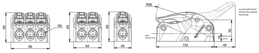 XAS0408/3 Triple 4-8mm 450 kg 6 x M6 0.7 kg