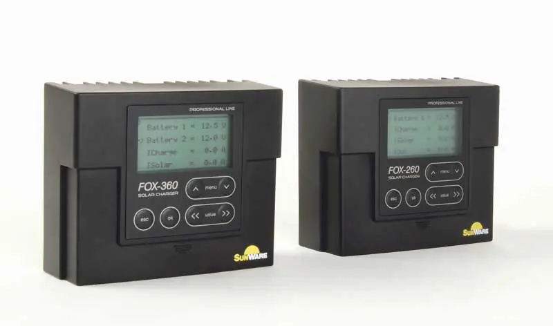Next generation solar regulators from Sunware. Designed for simple installation and operation, the Fox 260 & Fox 360 feature a built in graphical LCD display with backlight, keypad and control panel. Suitable for lead acid, gel and AGM batteries. The Fox 260 & Fox 360 combine hardware PWM with an optimized charge curve for a significantly faster and gentler battery charging, dangerous gassing or overcharging are prevented.