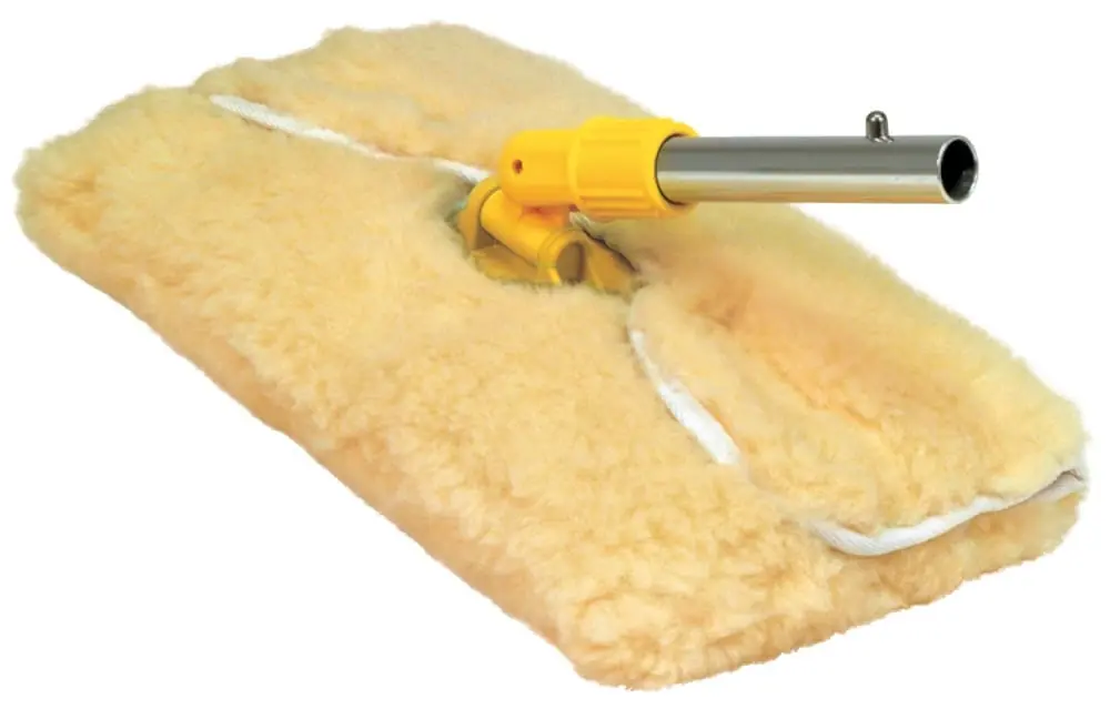 La herramienta de lavado suave Swobbit cuenta con un cabezal giratorio de doble eje combinado con una funda original de lana de oveja o microfibra Chenille. La superficie de limpieza de más de 450 cm² retiene abundante agua y jabón y garantiza un lavado rápido y profesional sin arañazos en todas las superficies lisas. El cabezal giratorio de doble eje sigue fácilmente curvas y contornos.