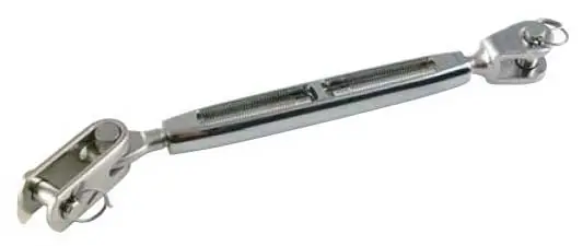 Tensores marinos UNF (rosca americana fina) de togle y horquilla fabricados en bronce cromado y acero inoxidable AISI 316 (A4).  El cuerpo de bronze cromado combinado con tornillos-horquilla de acero inoxidable AISI 316 previenen que los tornillos se agarroten en el cuerpo del tensor, problema típico de los tensores de solo acero inoxidable. El cuerpo de diseño abierto facilita el ajuste e inspección del tensor.