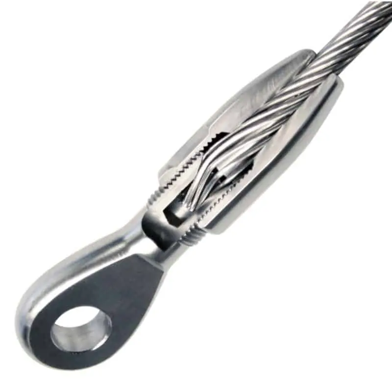 Terminales Blue Wave en acero inoxidable AISI 316, altamente pulidos para cable de 1x19. Instalación rápida y fácil con herramientas que normalmente tenemos a bordo. En nuestra opinión los terminales prensados a mano no son solo más fiables que los terminales prensados a máquina, sino que además pueden ser inspeccionados, reutilizados, y son ideales para reparaciones incluso en los sitios más remotos. Medidas para cable de 4mm - 10mm normalmente en stock, contáctenos para otras medidas.