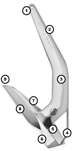 The anchor cannot lie on its back and recovers instantly to the attack position. The design is extremely strong and also allows compatibility with most bow rollers. Both the unique serial number and the anchor weight are stamped into the shank ensuring your anchor is always identifiable.
