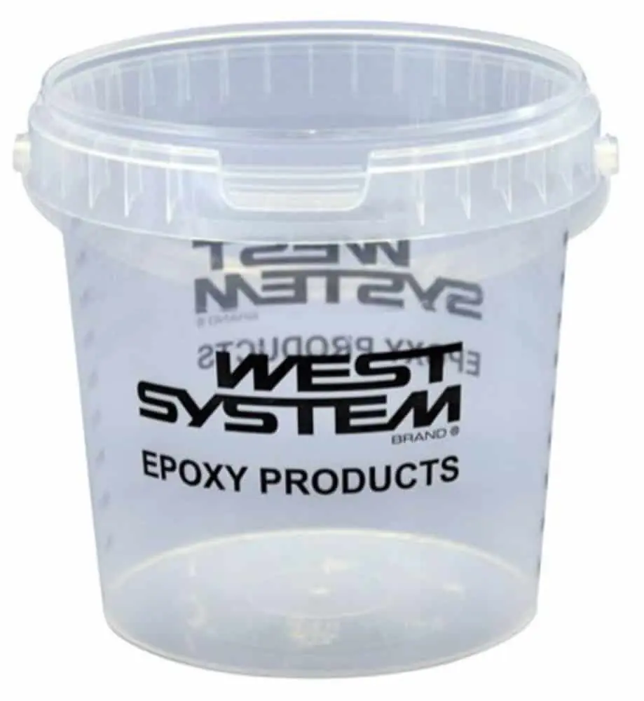Vaso de plástico transparente graduado para mezclar. Reutilizable, ideal para epoxy, pinturas, y otras resinas.