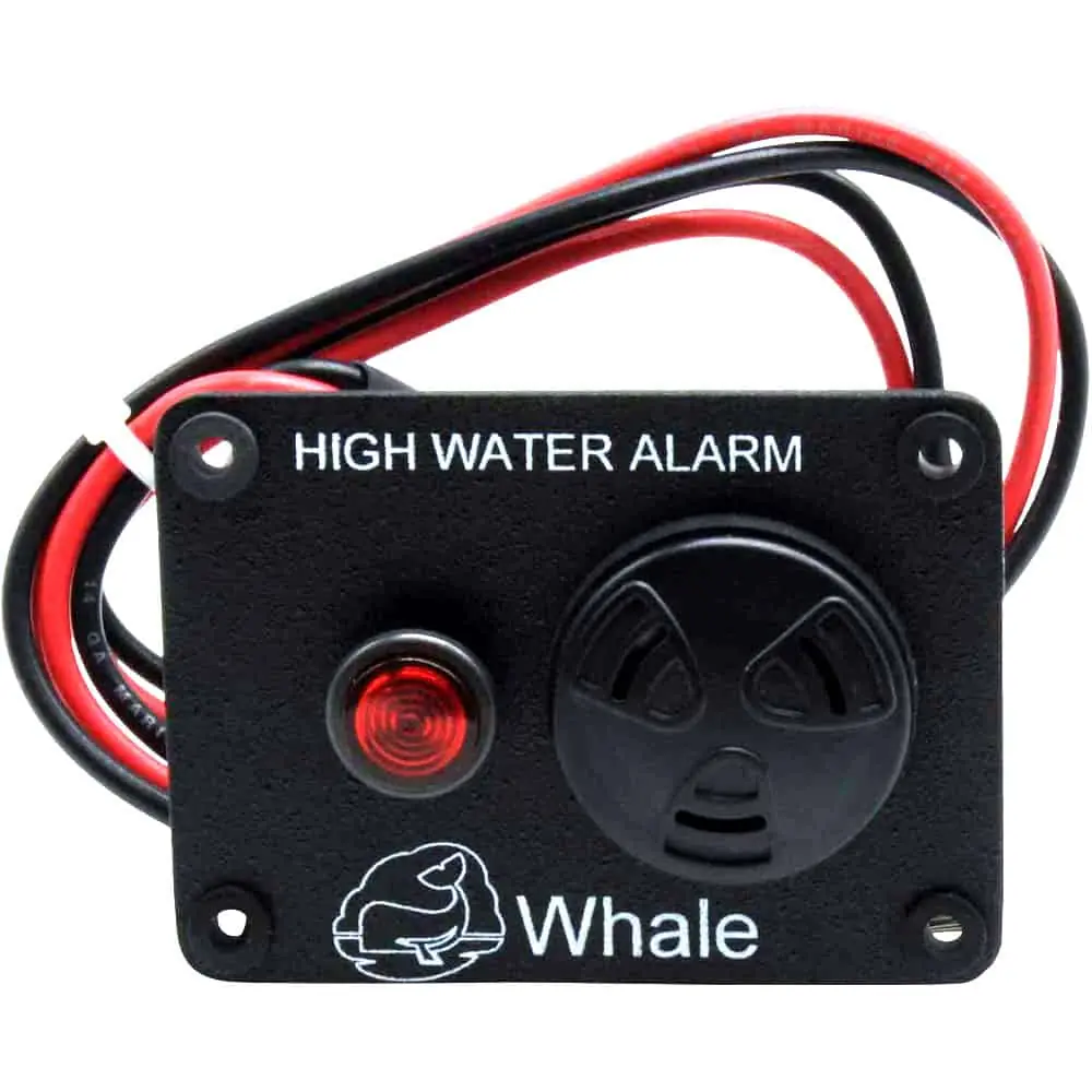 Elegante alarma e sentina / nivel alto de agua para montaje en panel, diseñada para su uso con el sensor de campo Whale u otros sensores de nivel de agua (no incluidos). Cuando el sensor de nivel de agua detecta un nivel alto de agua, el panel de alarma activa una fuerte alarma sonora (de 92 a 103dB) y una advertencia visual de LED rojo, alertando rápidamente a la tripulación de la situación.