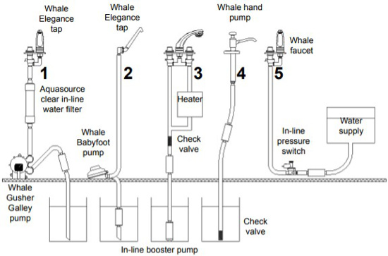 Muy populares no solo para barcos sino también para vehículos recreativos como caravanas o autocaravanas. Se puede usar junto con bombas manuales para opciones manuales y eléctricas en el mismo sistema. Gracias a su instalación en línea muy ligera y simple, las bombas de impulsion en línea Whale no requieren montaje y se pueden unir simplemente a una manguera flexible de 10 mm o 13 mm con los adaptadores incluidos o con conectores rápido de 15 mm en la opción de Whale Adaptador WX1511 que se vende por separado.