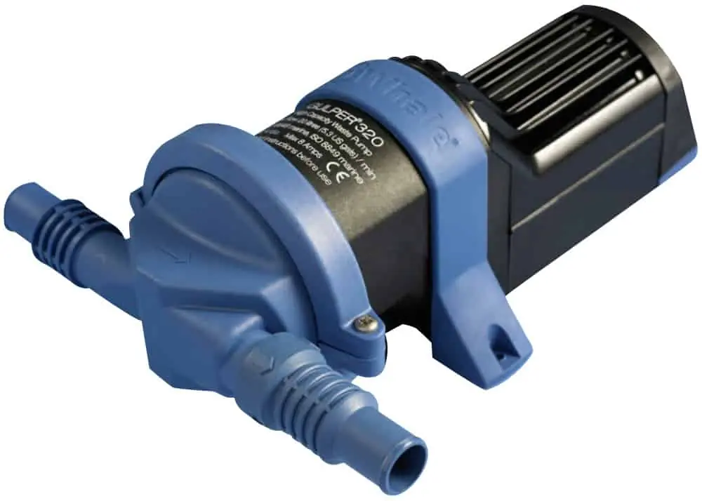 to 12m in length or secondary bilge pump in accordance with ISO8849 as well as a high capacity grey water/waste water pump. The simple design allows trouble free service and easy maintenance and as with all Whale diaphragm pumps, service kits and spare parts are readily available. The Gulper 320 is designed to be remote mounted in a dry location up to 3 meters above the suction point.
