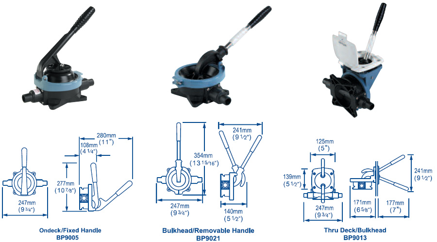 Available in three versions, the BP9005 Fixed Handle and the BP9021 Removeable Handle for surface mounting on the floor or bulkhead and the BP9013 for through deck/bulkhead mounting. Deck plates are available to complete the installation.