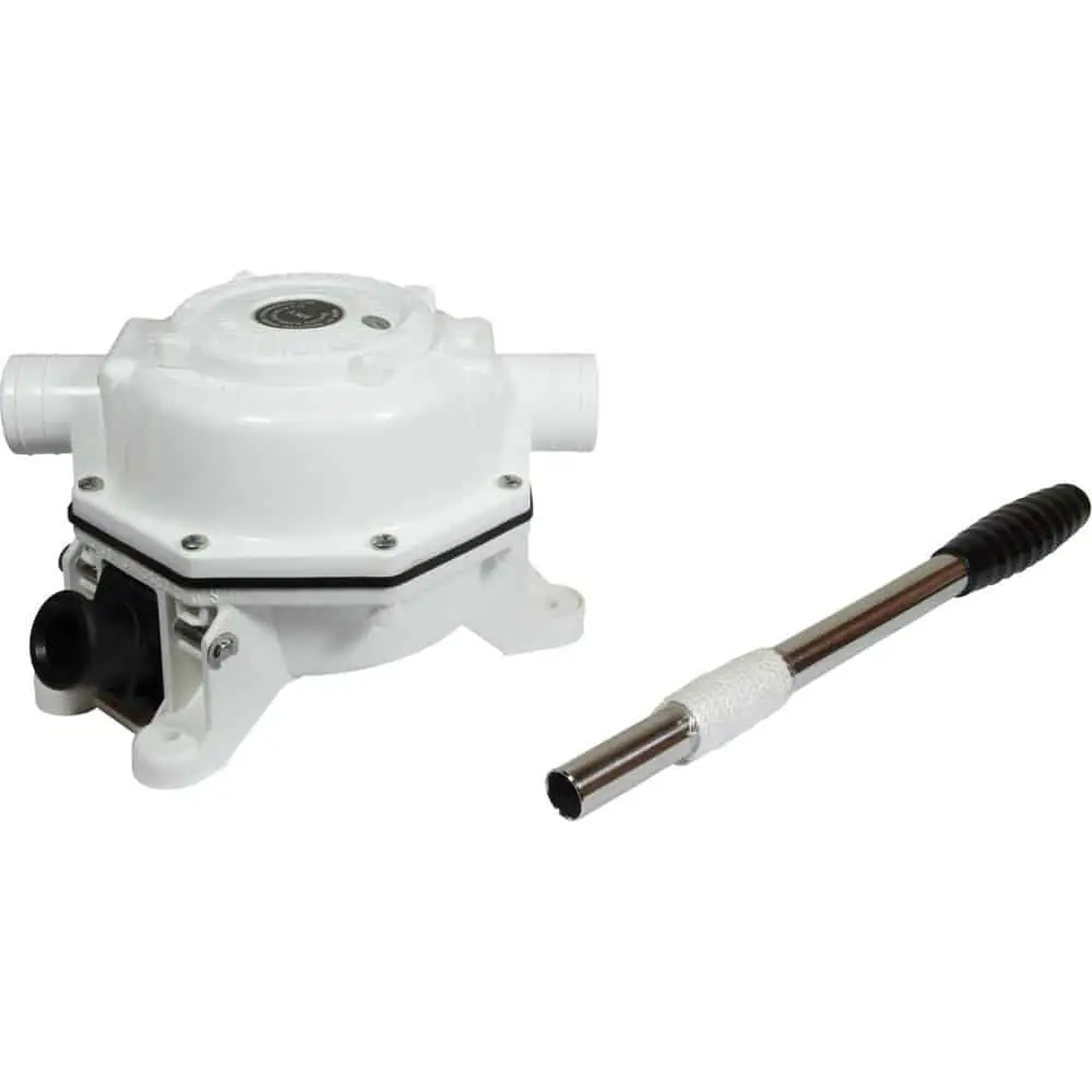 Manually operated black waste water pump designed for both toilet flushing and/or pumping out a holding tank. The Whale Mark V Henderson Sanitation pump is totally sealed to eliminate odours and designed for maximum reliability. The Mk5 Henderson features a screw on inspection port for easy maintenance and inspection without tools.