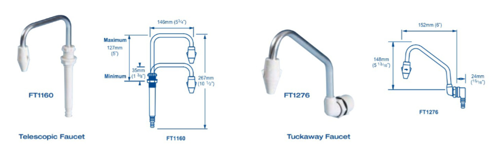 Available in three versions for both surface mounting or bulkhead mounting. All versions swivel for stowing out of the way when not needed and the surface mount versions are also telescopic. All versions feature a barbed connection for 1/2" (12 - 13mm) hose or Whale 15mm Quick Connect fittings.