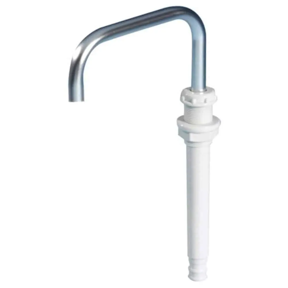 Simple aluminium and plastic cold water faucet/tap ideal for galley foot pumps or on/off manually activated pumps. Non corrosive marine grade materials suitable for both fresh and salt water.