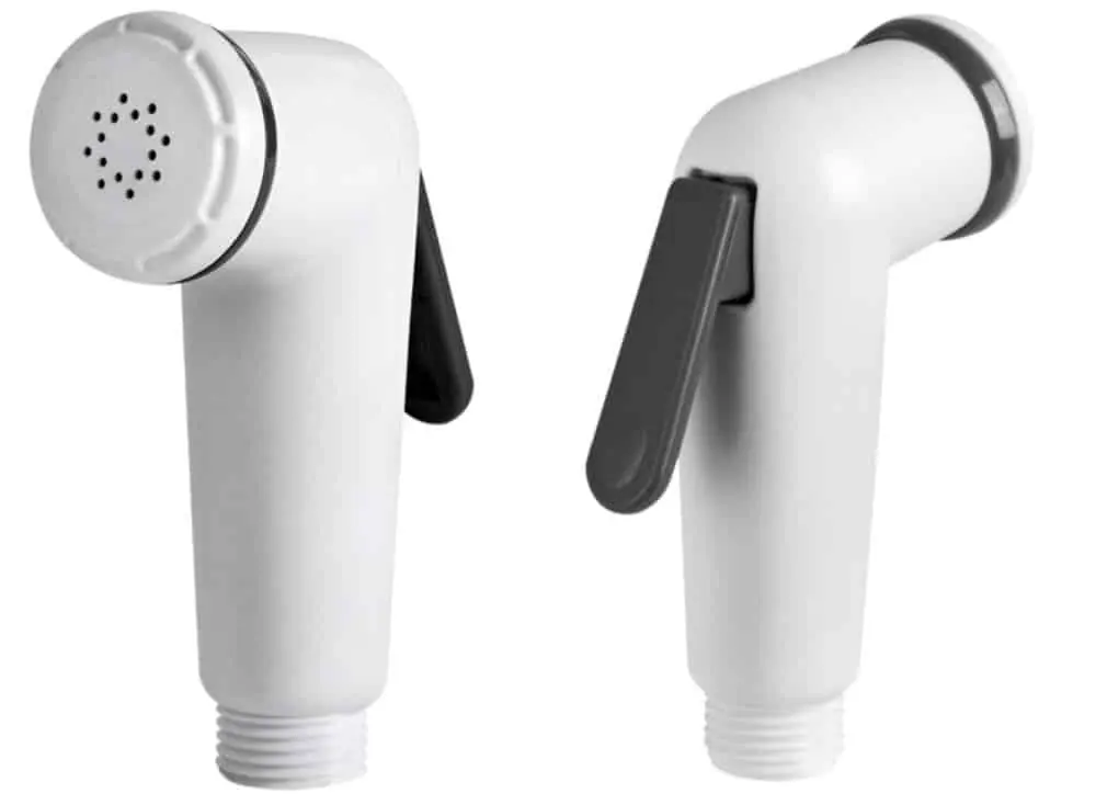 Simple, effective white ABS plastic shower head with trigger and 1/2" BSP male thread.