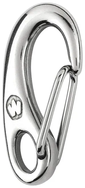 Mosquetón de Seguridad forjado de acero inoxidable 316L o en version HR de Inox martensítico X5CrNiCuNb 16-4 de alta resistencia.