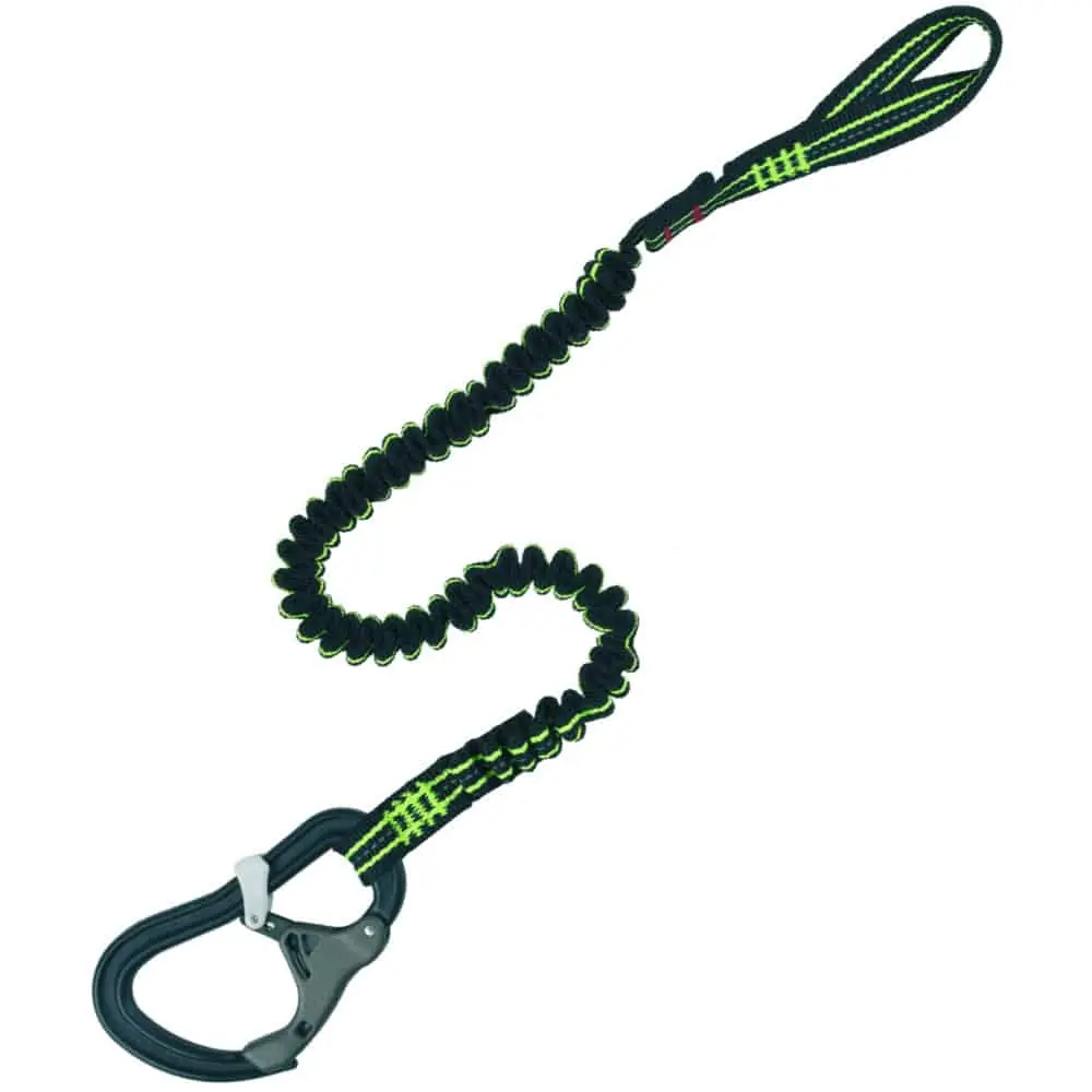 Linea de vida extensible ligera (175 g) de 1,4 m con 1 gancho de seguridad de doble acción. El uso de una linea de vida elástica permite moverse libremente por la cubierta sin enredos ni tropiezos.