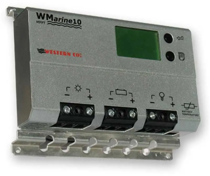 The Western Co. WMarine 10 is a versatile MPPT controller suitable for use with both 12v and 24v systems and panels and due the built in buck boost circuit can be used with solar panels which have a voltage ouput lower than the batteries to be charged. The wide range voltage input allows the use of 5V-40V Voc solar panels for either 12v or 24v systems. Tried and tested in a multitude of industrial applications from road signs to weather stations, CCTV and buoys.